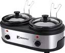 Using the dual pot slow cooker's built side handles, you can transfer it safely from counter to table.