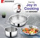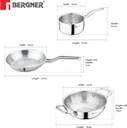 BERGNER BE Essentials Tripro Triply 3 Pcs of Kadai 24cm/3 L, Teapan 14cm, Frypan 22cm Induction Bottom Cookware Set (Triply, Stainless Steel, 3 - Piece)