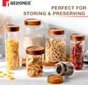 Bring organization and elegance to your kitchen with the Bergner Acadia Borosilicate Glass Jar. Crafted from premium, heat-resistant Borosilicate glass, this jar offers exceptional durability and clarity, allowing you to easily see what's inside at a glance. The solid acacia wood lid creates an airtight seal, locking in freshness and preventing leaks, while its natural beauty complements any kitchen decor. But functionality doesn't stop there. The Bergner Acadia jar boasts superior corrosion resistance, ensuring the lid and glass stay in pristine condition for long-lasting use. Plus, the non-porous glass surface makes cleaning a breeze – simply wash by hand or toss it in the dishwasher for effortless maintenance. Food safety is paramount, and this Bergner jar delivers. Made from food-safe materials, it's the perfect vessel for storing a variety of dry goods like sugar, flour, tea, coffee, spices, biscuits, and oats. The airtight lid helps preserve the freshness and flavor of your ingredients, keeping them pantry-perfect longer. This Bergner jar isn't just about aesthetics and functionality; it's also designed for space optimization. The stackable design allows you to maximize storage efficiency in your pantry or kitchen cabinets. Available in multiple sizes you can choose the perfect fit for your needs. So, ditch the flimsy plastic containers and elevate your kitchen organization with the Bergner Acadia Borosilicate Glass Jar. It's a perfect choice for both everyday use and gifting, making it a must-have for any home cook