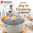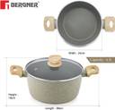 Bergner Naturally Ceramic Forged Aluminum Casserole is a versatile and durable cookware piece designed for healthy and efficient cooking. Crafted from high-quality forged aluminum, this casserole ensures even heat distribution, preventing hot spots and burning, allowing you to cook with less oil and maintain the integrity of your food. The inside grey ceramic coating provides a non-stick surface, reducing the need for excessive oil and promoting healthier meals. The outside grey HTR with marble dots adds a touch of elegance to your kitchen. The wooden soft touch handles provide a comfortable grip and stay cool to the touch, even during cooking. The glass lid with a steam vent allows for easy monitoring of your cooking and prevents excessive moisture buildup, ensuring your food cooks evenly and retains its flavor. This casserole is ideal for a variety of dishes, including stews, curries, and braises. With its exceptional performance, durability, and stylish design, the Bergner Naturally Ceramic Forged Aluminum Casserole is a valuable investment for home cooks who appreciate quality and efficiency. Whether you're a seasoned chef or a beginner, this casserole will help you create delicious and healthy meals with ease.