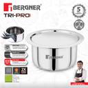 BERGNER Tripro Triply Stainless Steel Tope Induction Bottom with Lid 6.1 L capacity 24 cm diameter (Stainless Steel, Induction Bottom)