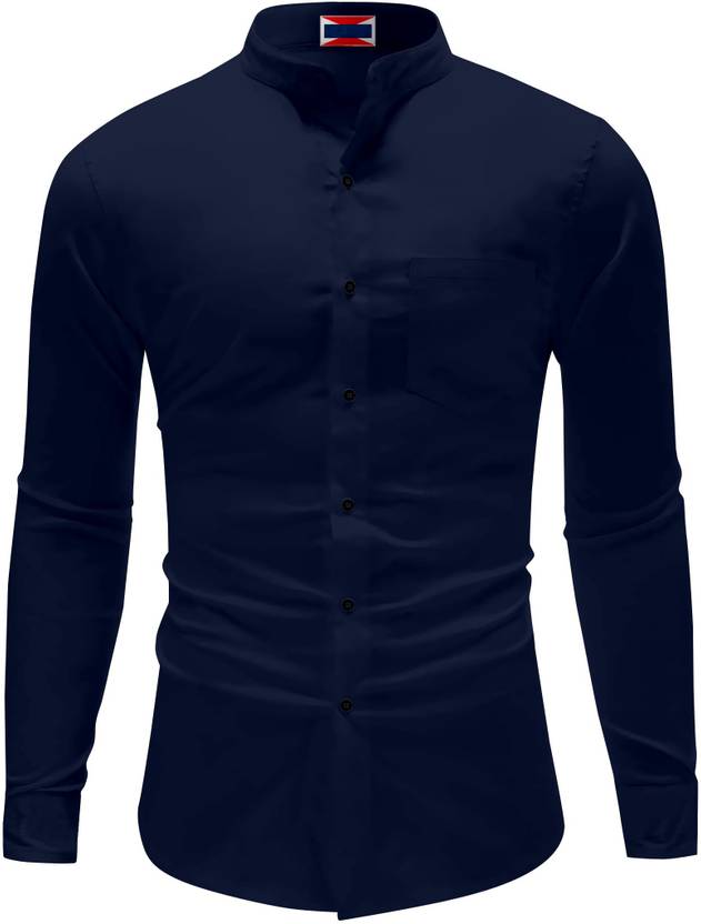 Men Regular Fit Solid Mandarin Collar Casual Shirt