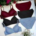 Bra & Panty Set Solid Maroon, Black, Blue Lingerie Set
