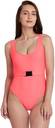 Berry's Intimatess Hot Peach One Piece Swimsuit with waistbelt. Solid Women Swim-dress Pink Swimsuit