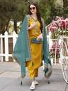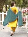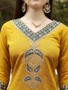 Make a statement in our Mustard Chanderi kurta suit set, featuring beautiful floral embroidery on the kurta and a delicate organza embroidered dupatta. Elevate your look with this elegant ensemble.