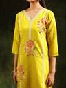 This kurta suit set features a delicate embroidered cut work organza dupatta and full front embroidery. Made from high-quality chanderi fabric, this set is both elegant and comfortable. Enhance your style with this expertly crafted set.