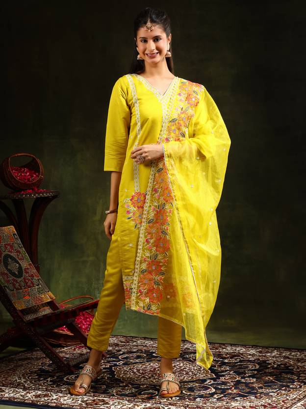 Embroidered Kurta with pant & Organza Embroidered Cut Work Dupatta