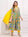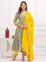 Embroidered & Printed Multicoloured Flared Kurta with pant & dupatta