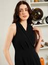 What elegance redefined! Berrylush BIZwear is introducing its Solid Black V-Neck Sleeveless Straight Hem Wide Leg Ankle Length Jumpsuit tailored for special occasions. Superbly woven from high-grade polyester, its gentle black colour perfectly captures perennial elegance. The V-neck gracefully emphasizes the décolletage. Meanwhile, going sleeveless gives it a modern touch. With its straight hemline and wide-leg style, this jumpsuit means an elongated silhouette at the ankle. Two functional pockets are both practical and stylish-having the best of everything. A concealed zipper beneath its opaque finish completes the polish, making this piece an essential item for the completion of your collection of formal attire.