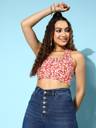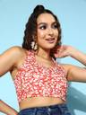 Indulge your capsule closet into captivating colour play this season with the perfect blend of vibrancy and chicness by opting for this striking Red Floral Print Halter Neck Sleeveless Crop Top from Berrylush. Framed in a fitted profile that gives this top form-fitting silhouette to elegantly showcase your natural curves with a comfy feel. Spun from high-quality polyester fabric that lends this top anti-shrinking and anti-stain properties. In addition, the cropped length of this top keep you updated with the latest trend with sexy style note. Look glamorous on your way out of your house by wearing this crop top with a white mini skirt, white sneakers, matching stud earrings, and a sassy sling bag.