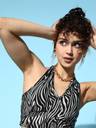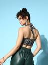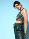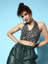 Looking for timeless yet bold ensembles with easy transition throughout the year, then the most suitable option for your capsule wardrobe is this captivating White and Black Animal Print Halter Neck Sleeveless Crop Top from Berrylush. Decorated with an enchanting mixture of white and black animal print that gives this top a striking appearance with fierce spirit. Milled from breathable cotton fabric that offers this top hypoallergenic and odour-free characteristic to keep your body comfortable for a prolonged duration. Highlighting tie-up closure that lends this top adjustable and easy fastening attribute with a cute glistening sheen. Look fabulous as you walk on the street by pairing this crop top with high-waist jeans, block heels, and a matching handbag.