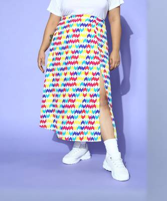 Berrylush Curve Printed Women Flared White Skirt Reviews