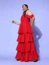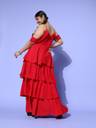 Look like royalty with luxe design and flowy essence by wearing this charming Solid Red V-Neck Cold-Shoulder Sleeves Flounce Hem Layered by berrylush. A-Line Maxi Dress launched. Presenting a V-neck design that gives your neckline an eccentric appeal with a breathable structure. Styled with a flounce hemline and layered detailing that includes additional flair and volume to this dress and presents a tantalizing style. Moreover, this dress is detailed with a zipper closure to lend a clean sheen as the zip is not visible from the outside. You can wear this maxi dress with a pair of high-heels, minimalistic silver jewellery, and a stylish sling bag to get a stunning appearance.