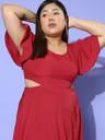 Boost your party wears sartorial with a style that represents your bold persona just like this stunning Side Slit Cutout Crepe Maxi Dress designed by Berrylush. This dress is the perfect addition to your capsule closet as the majestic combination of red shade and solid pattern reflects your strong aura followed by a cinematic vibe. Showing off cut-outs surface styling at the back which makes this dress appear exotic with a dash of enticing detail. Moreover, the round neck design lends this dress a modest twist with a sophisticated outline to your beautiful neckline. Complete your look effortlessly by wearing this maxi dress with a pair of silver high heels, minimalistic silver jewellery, and a matching clutch.
