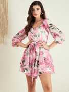 Introducing the Berrylush Black & Red Floral Printed Mini Jumpsuit—the perfect juxtaposition of edgy and whimsical aesthetics. This stunning ensemble features a bold black and red floral print that captures the eye, while a delicate sweetheart neckline accentuates your femininity. The puff sleeves add a playful touch to its silhouette, complemented by an elegant tie-up waist that flatters any figure. Crafted from high-quality polyester for lasting comfort, this mini jumpsuit is finished with layered detailing and secures effortlessly with a concealed zipper closure His piece ensures you make an unforgettable statement at any casual gathering.