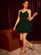 Introducing the Berrylush Solid Green V-Neck Sleeveless Waist Lace Inserts Zipper-Up Layered Mini Jumpsuit - a stunning ensemble crafted for the bold and beautiful. This exquisite piece, perfect for any party occasion, boasts a deep V-neck and sleeveless design that seamlessly flatters your silhouette. The mini garment length paired with a flared hemline accentuates your legs, making you stand taller among your peers. Constructed from high-quality polyester in a rich green hue, it promises both comfort and durability without compromising style. Intricate lace inserts add an elegant touch of femininity to this sophisticated outfit while its layered detailing ensures you'll capture everyone's attention. Designed with practicality in mind, it features a convenient zipper closure ensuring ease of wear without sacrificing elegance or styleโtrue to Berrylushโs commitment to fashion-forward designs that empower women through their wardrobe choices: opaque transparency means confidence in every step!