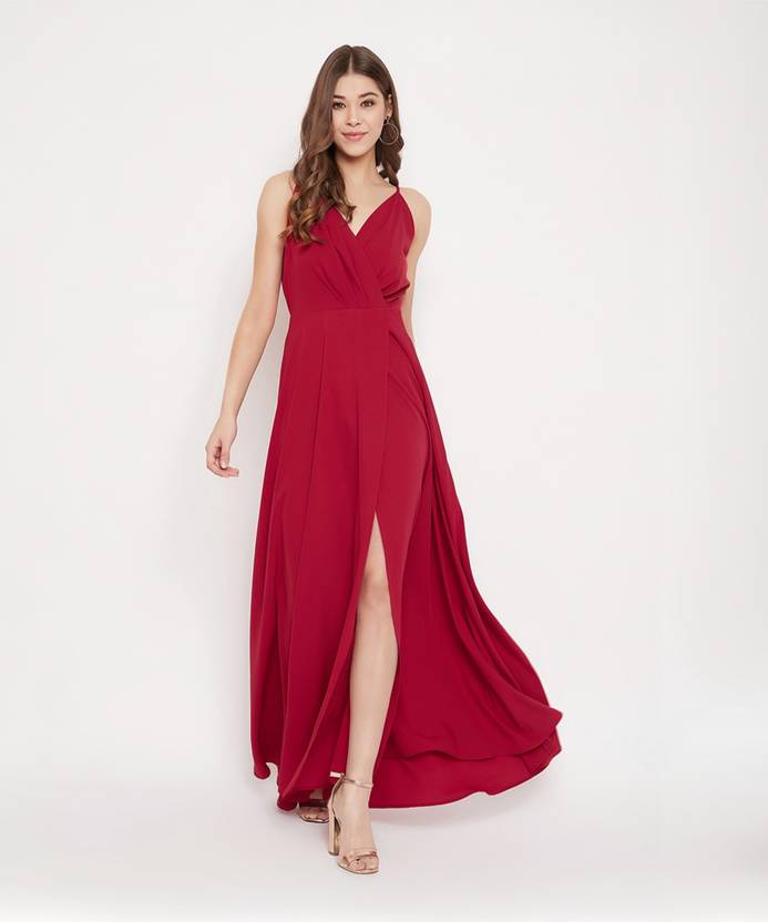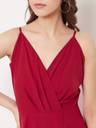 You will be an ideal example of style and glamour by putting on this Solid Red V-Neck Flared Maxi Dress from Berrylush. The striking red colour with a wrap pattern presents a magnificent outlook. Properly finished lines with an intriguing V-shaped neckline highlights your bare collarbone and makes you look taller. The X factor that makes this apparel an exquisite one is in the front high slit with unmatched elegance. The strappy bare shoulder with the banded waist is a superb combination of flamboyance & style. A pair of black stilettos and a charming clutch is all you need to complete your gorgeous party appeal. Try this stunning maxi dress from Berrylush and leave a wonderful impact on others.