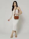 Elevate your accessory game with the Berrylush Tan Textured Sling Bag. Crafted from premium synthetic leather, this chic sling flaunts a textured pattern that adds an edge to its casual elegance. The bag is adorned with a tastefully embellished logo, ensuring style meets sophistication. It has two main compartments and one inner pocket, all secured by zippers, offering ample space for your essentials. Customize your carrying style with the detachable strap providedperfect for versatile styling options on the go! This bag isn't just an accessory; it's a statement perfect for any casual occasion.