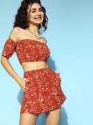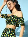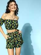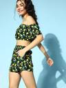 If you prefer relaxing style yet wanted to keep your wardrobe up-to-date, then you need this Black & Yellow Floral Printed Off-Shoulder Neck Elastic Waist Crop Top & Shorts Co-Ordinate Set from Berrylush. Rendered from high-quality polyester fabric that offers this co-ord set astonishing abrasion resistance with easy shape to retain feature. Fashioned with above-knee-length shorts that give an exotic appeal to your beautiful legs along with freedom of movement. Designed with two pockets that makes the shorts appear more fascinating with a practical style statement that helps to keep your essential with you just like a phone or car keys. You can team up this co-ord set with a pair of black block heels, cool black triangular sunglass, and a yellow handbag to create a stunning look.