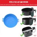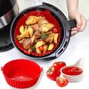 ESSENTIAL AIR FRYER ACCESSORIES: 7.9 inches reusable air fryer silicone pot. No more cleaning the air fryer basket, making you more willing to use the air fryer and enjoy tastier food at the same time. Say goodbye to the sticky and burned residue. PERFECT FITS ALL 3QT- 5QT AIR FRYERS: Air fryer silicone lines perfect for 3-4.2-5 QT air fryers, Compatible with most air fryers. These air fryer oven accessories can also be used in an oven, microwave or pressure cooker. HEAT RESISTANT & FOOD-SAFE: Our silicone pot is made of BPA-free, food-grade pure silicone. that withstands up to 464 °F and down to -40 °F for air frying, steaming, and oven baking. Our air fryer silicone liner is reusable, and will not deform or damage after hundreds of uses, it is the most valuable air fryer accessory. EASY CLEANING & DISHWASHER SAFE: Our silicone pot is so soft and flexible that you just need to flip it over inside out and wash it with warm water. No more cleaning the air fryer basket, Keeps your air fryer free from food residue, grease, and grime without compromising the life span of your air fryer. Completely dishwasher safe, allowing you to avoid the trouble of hand washing. EVENLY HEAT AIR FRYER SILICONE LINER: The Air fryer pads have many raised lines, which improve the circulation of heat to fully heat the food for more even doneness. Keep your bacon, bread, dumplings, turkey, and buns' integrity and a nice look, and no effect on the taste of the food. Specifications