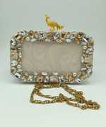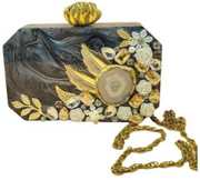 Package Contains 1 Resin Clutch Bag, Detachable shoulder chain strap with metal hooks, convertible design, can be used as a handbag, a shoulder bag, or a crossbody bag; good suture technique, refined bag bearing, a pretty clutch for girls and ladies, Acrylic Design: This bag is composed of high-quality acrylic material, which gives it a luxurious and stylish appearance, The bag has a well stitched inner lining and high quality zippers for easy accessibility and storage