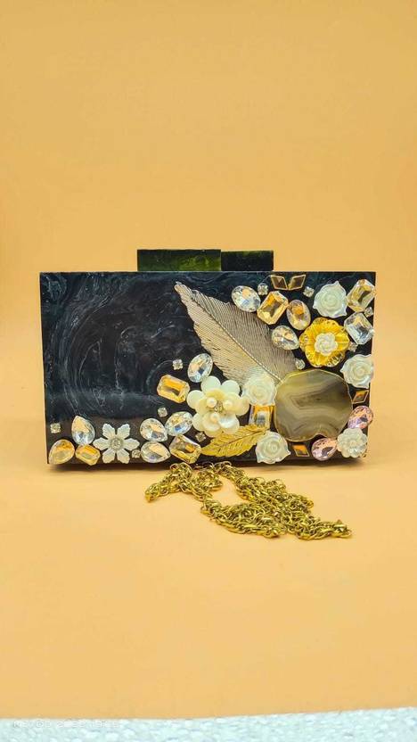 Package Contains 1 Resin Clutch Bag, Detachable shoulder chain strap with metal hooks, convertible design, can be used as a handbag, a shoulder bag, or a crossbody bag; good suture technique, refined bag bearing, a pretty clutch for girls and ladies, Acrylic Design: This bag is composed of high-quality acrylic material, which gives it a luxurious and stylish appearance, The bag has a well stitched inner lining and high quality zippers for easy accessibility and storage