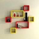 Best Quality Rectangular Cube Shape Wall Mount Shelf Wall Rack Floating Shelves MDF (Medium Density Fiber) Wall Shelf (Number of Shelves - 6, Yellow, Red)