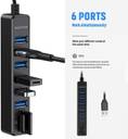 Bestor 8 IN 1-6-Port USB 3.0 Hub with SD/TF Card Reader High-Speed Multiport USB Splitter for Laptop, PC, Mac – Plug & Play USB Hub