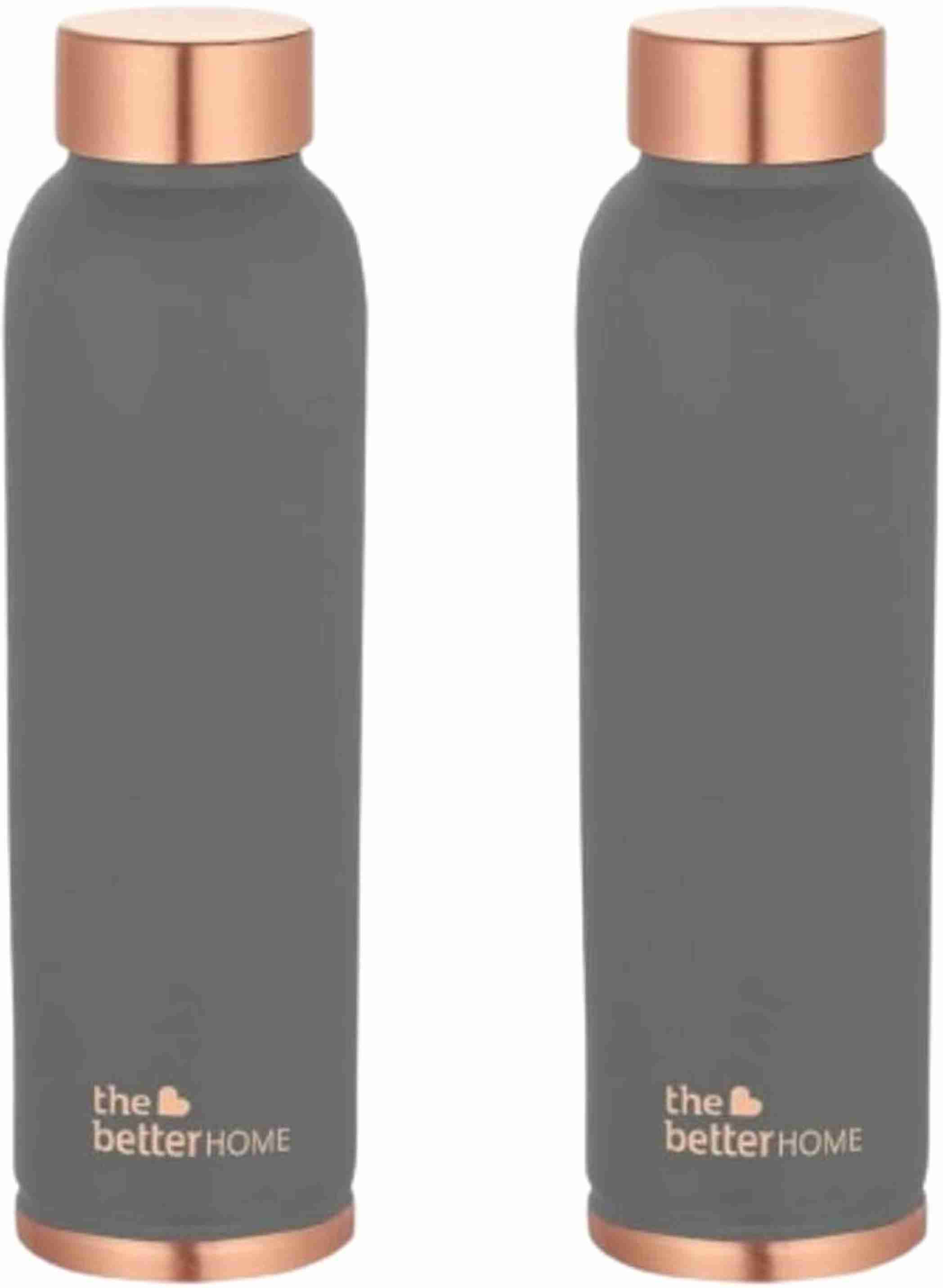 Grey Copper Water Bottle 1L (Pack of 2) | Pure Copper Insulation, Wide Mouth | 950 ml Copper Bottle (Pack of 2, Grey)