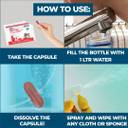 Simply dissolve 1 capsule into 1 liter of water in any spray bottle. Shake well and spray on any kitchen surface. Wipe clean with any cloth, sponge or duster.