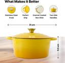 Discover the versatility of the Dutch oven, expertly crafted from cast iron for exceptional performance and durability. With a generous capacity of 3.5 liters and dimensions of 31x24x11.5 cm (LBH), this pre-seasoned cookware is perfect for preparing stews, soups, and a variety of rice dishes, making it an ideal choice for families, including daughters and grandchildren. The enamel coating ensures a smooth texture and protects against rusting, while the heavy-duty, non-stick surface simplifies both cooking and cleanup. This oven-safe cookware is induction compatible, ensuring it fits seamlessly into any kitchen setup, whether you're using a stove, oven, or induction cookware steel. Customers appreciate the quality and cooking performance, finding it perfect for baking bread, slow-cooking meats, and serving up delicious casseroles at family gatherings. Although some users have expressed concerns about packaging and handle comfort, this Dutch oven is designed for easy use and care, being dishwasher safe for added convenience. Elevate your cooking experience with this indispensable kitchen companion, where performance meets practicality, ensuring every meal is a memorable experience for you and your loved ones. Perfect for gifting and camping adventures, this Dutch oven exemplifies quality and value in one beautiful, glossy yellow finish.
