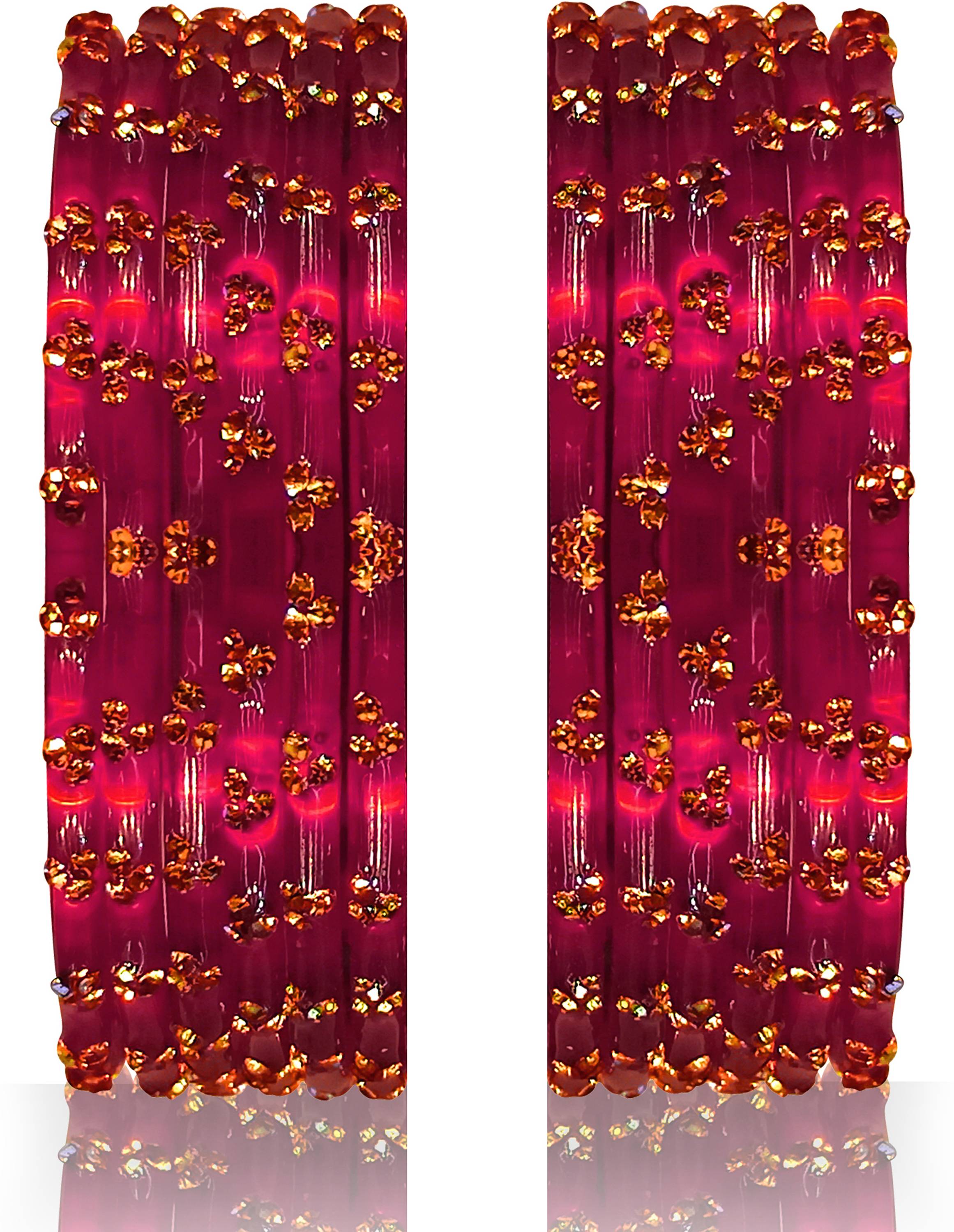 These elegantly crafted glass bangles from BEUTIFLY Bangles make for a stunning accessory. The set of 12 bangles comes in a vibrant colors, each piece adorned with intricate beadwork designs. Handmade by skilled Indian artisans, the bangles have a classic cylindrical shape perfect for stacking or wearing alone. They fit most wrist sizes comfortably. Lightweight yet eye-catching, these bangles can jazz up any Indian or Western outfit from everyday casual wear to festive events. Their shining glass construction lends an air of sophistication, while the traditional beaded patterns add an ethnic touch. A versatile wardrobe essential, this bangle set is sure to attract appreciation and compliments from all. NOTE: The color may be little bit different from the images.