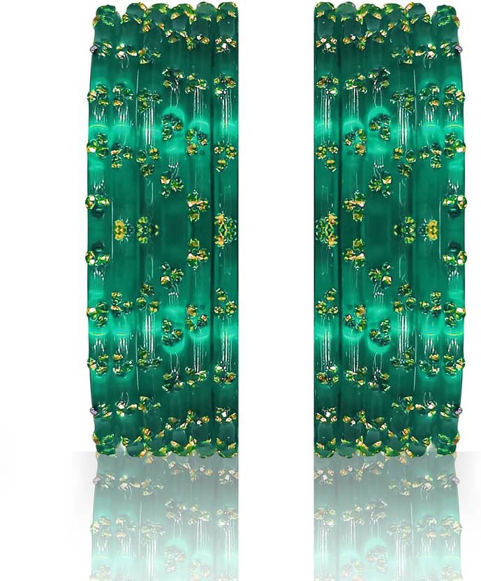These elegantly crafted glass bangles from BEUTIFLY Bangles make for a stunning accessory. The set of 12 bangles comes in a vibrant colors, each piece adorned with intricate beadwork designs. Handmade by skilled Indian artisans, the bangles have a classic cylindrical shape perfect for stacking or wearing alone. They fit most wrist sizes comfortably. Lightweight yet eye-catching, these bangles can jazz up any Indian or Western outfit from everyday casual wear to festive events. Their shining glass construction lends an air of sophistication, while the traditional beaded patterns add an ethnic touch. A versatile wardrobe essential, this bangle set is sure to attract appreciation and compliments from all. NOTE: The color may be little bit different from the images.
