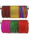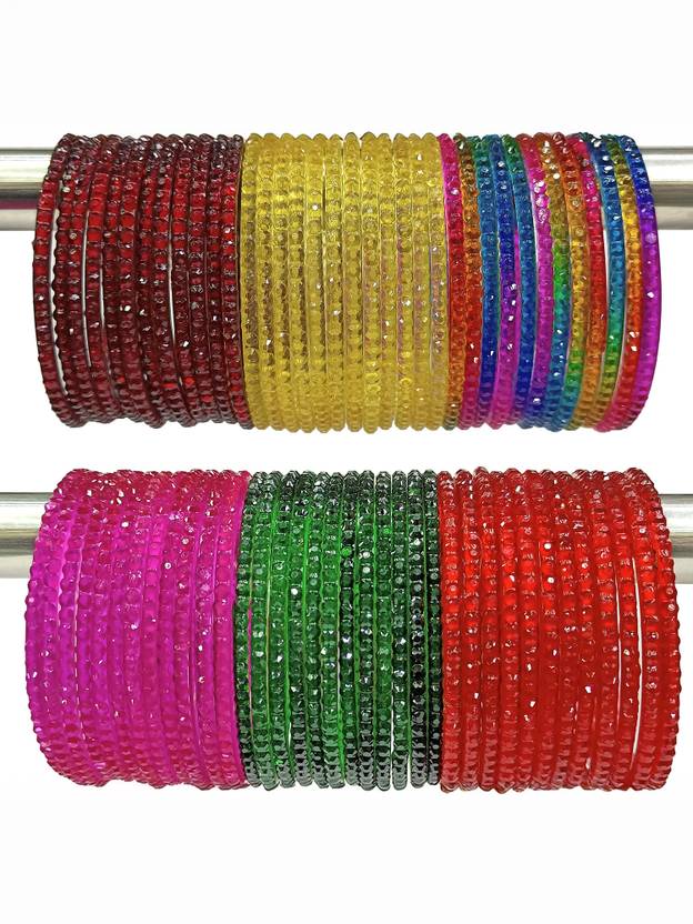 These elegantly crafted glass bangles from BEUTIFLY Bangles make for a stunning accessory. The set of glass bangles comes in a vibrant colors, each piece adorned with intricate beadwork designs. Handmade by skilled Indian artisans, the bangles have a classic round shape perfect for stacking or wearing alone. They fit most wrist sizes comfortably. Lightweight yet eye-catching, these bangles can jazz up any Indian or Western outfit from everyday casual wear to festive events. Their shining glass construction lends an air of sophistication, while the traditional beaded patterns add an ethnic touch. A versatile wardrobe essential, this bangle set is sure to attract appreciation and compliments from all. NOTE: The color may be little bit different from the images.