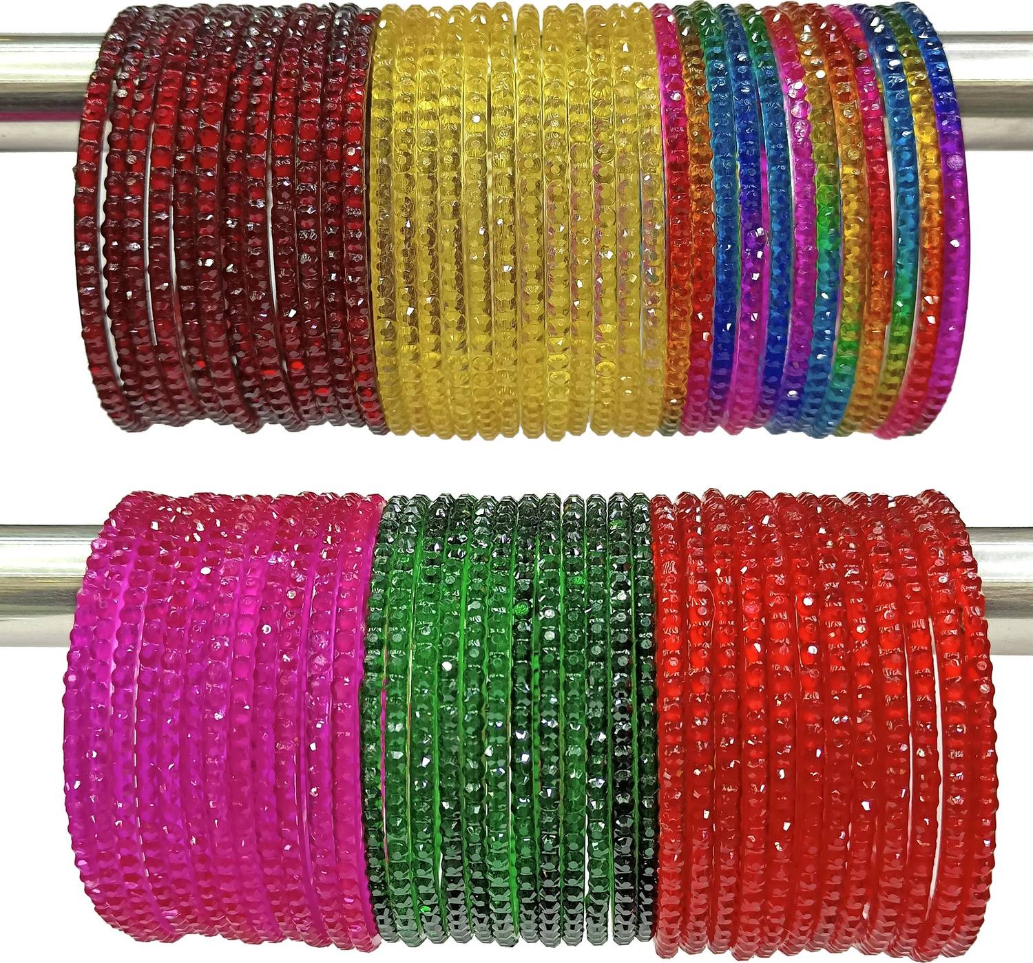 Multicolor Glass Bangle Combo Set, Handmade Bangles, Beaded Design for Girls & Women's (6 Dozen)