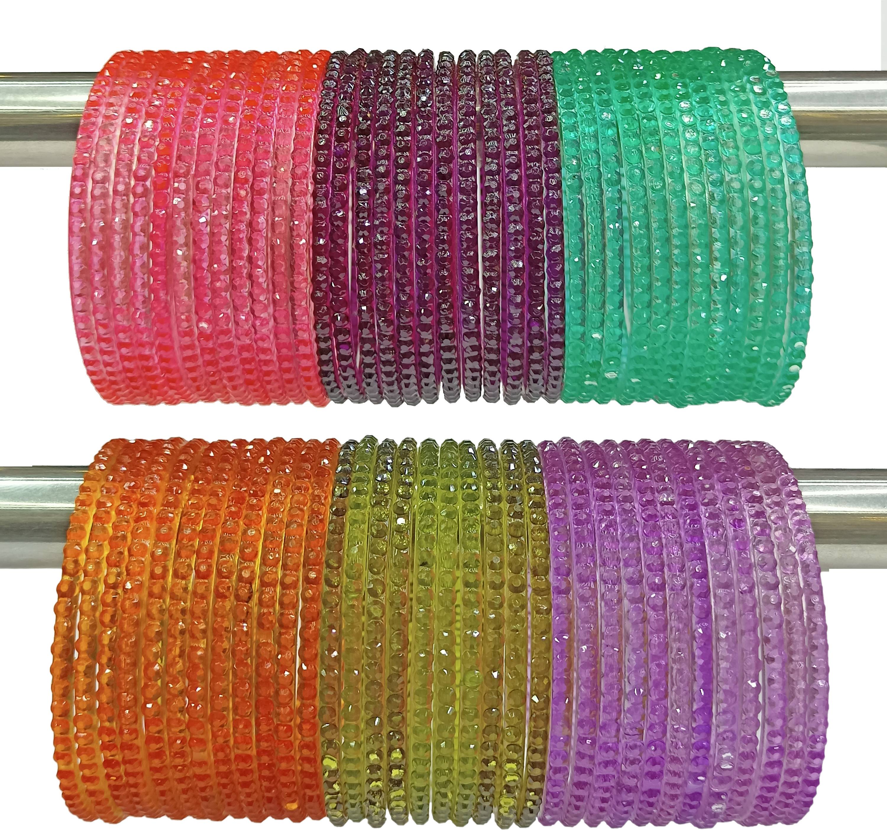 These elegantly crafted glass bangles from BEUTIFLY Bangles make for a stunning accessory. The set of glass bangles comes in a vibrant colors, each piece adorned with intricate beadwork designs. Handmade by skilled Indian artisans, the bangles have a classic round shape perfect for stacking or wearing alone. They fit most wrist sizes comfortably. Lightweight yet eye-catching, these bangles can jazz up any Indian or Western outfit from everyday casual wear to festive events. Their shining glass construction lends an air of sophistication, while the traditional beaded patterns add an ethnic touch. A versatile wardrobe essential, this bangle set is sure to attract appreciation and compliments from all. NOTE: The color may be little bit different from the images.