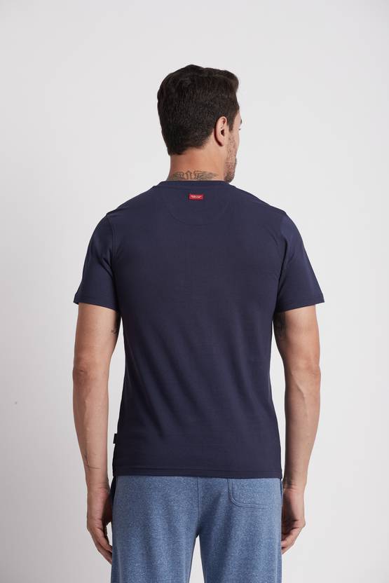 Men Graphic Print Round Neck Pure Cotton Blue T-Shirt