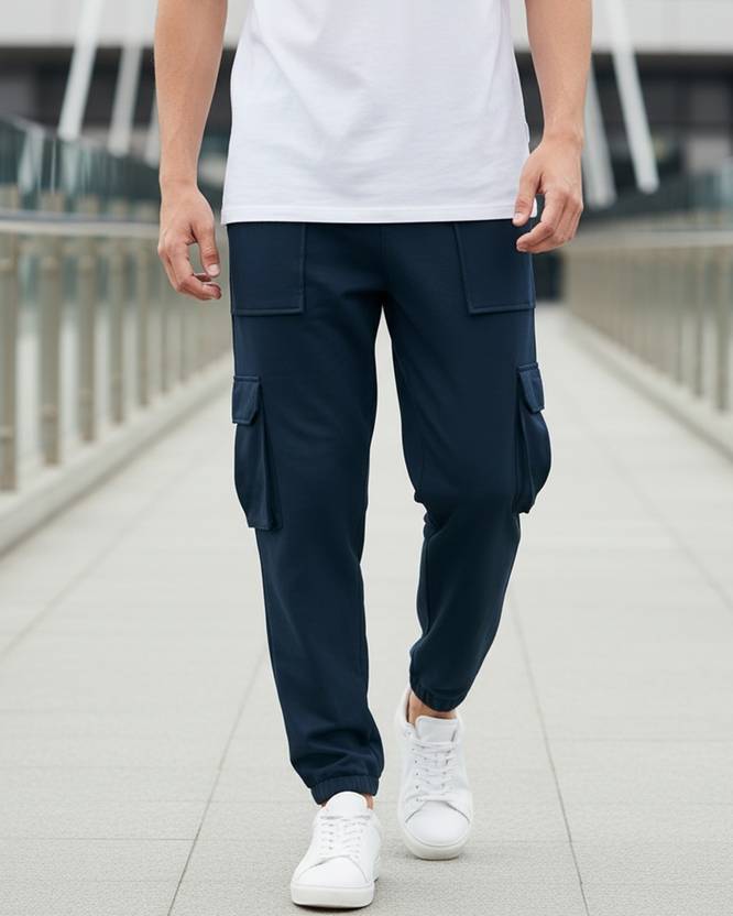 Men Solid Blue Track Pants