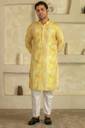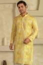 LEMONX Men Printed Cotton Rayon Straight Kurta (Yellow)