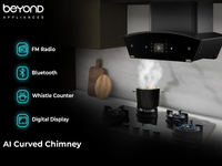 Featuring a curved design, this chimney blends minimalist aesthetics with functional efficiency, creating a sleek kitchen environment. Moreover, with a powerful suction capacity of up to 1408 m³/hr and up to three-speed settings, it draws out smoke, grease, and odours quickly. This allows for a comfortable cooking experience. Plus, the filterless technology supports optimum suction without the need for frequent maintenance.