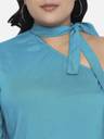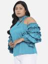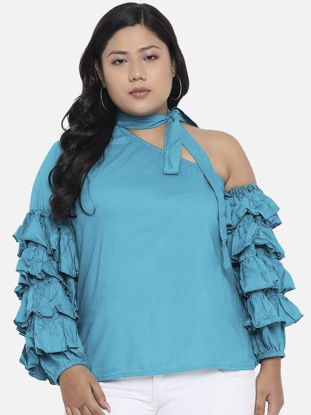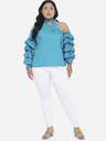 Casual Puff Sleeves Solid Women Blue Top