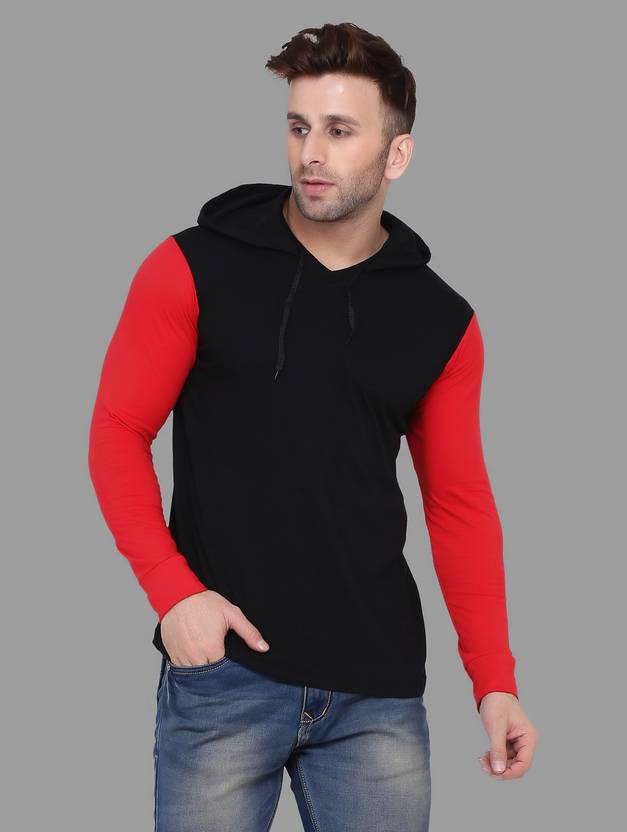 BEYOU FASHION Colorblock Men Hooded Neck Red, Black T-Shirt