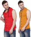 Men Regular Fit Solid Ribbed Collar Casual Shirt (Pack of 2)