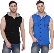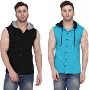 Men Regular Fit Solid Ribbed Collar Casual Shirt (Pack of 2)