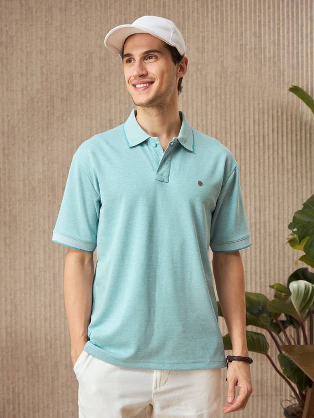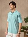 BEYOUNG Men Solid Polo Neck Cotton Blend Blue T-Shirt