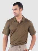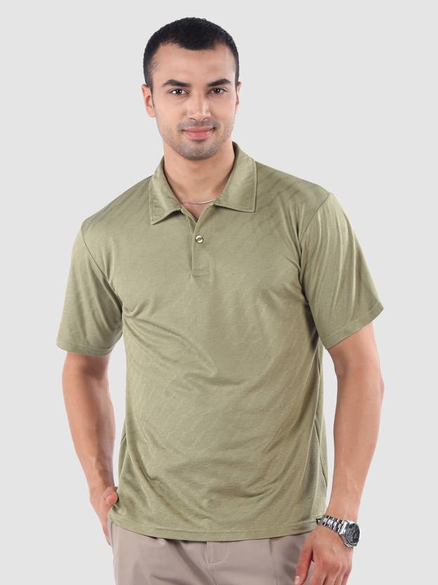 Men Striped Polo Neck Polycotton Green T-Shirt