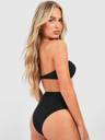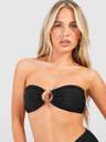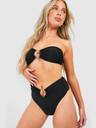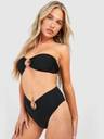 Turn heads at the beach with this Black & Gold Trim High-Waisted Bikini Set. Featuring a sleek bandeau top with gold hardware detailing, this swimsuit exudes elegance and sophistication. The high-waisted bikini bottoms offer a flattering shape, while the gold ring embellishments add a chic and trendy touch. Designed with stretchable and quick-drying fabric, this set ensures maximum comfort while making a bold fashion statement. Whether you're lounging by the pool or hitting the waves, this bikini set is the perfect combination of style and function.