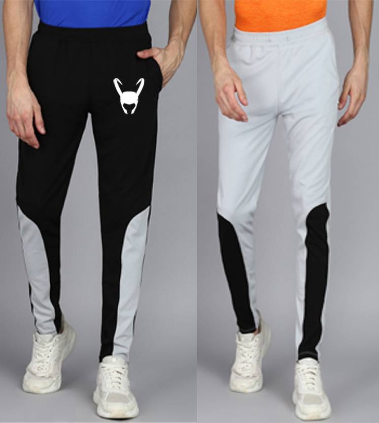bfb Pack of 2 Men Printed, Colorblock Black, Grey Track Pants