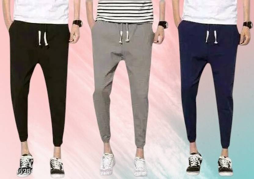 bfb Solid Men Black, Grey Track Pants