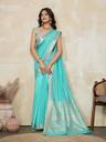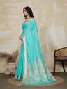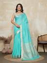 BFM Solid/Plain Bollywood Linen Saree (Light Blue)